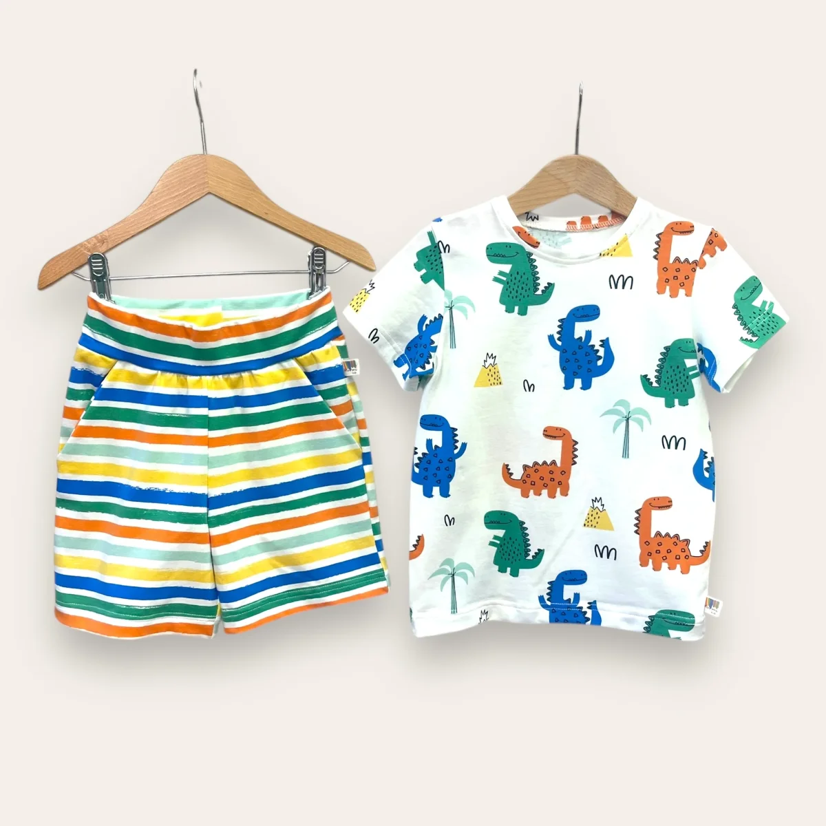 Conjunto de Bermuda y camiseta estampada en Dinosaurios.