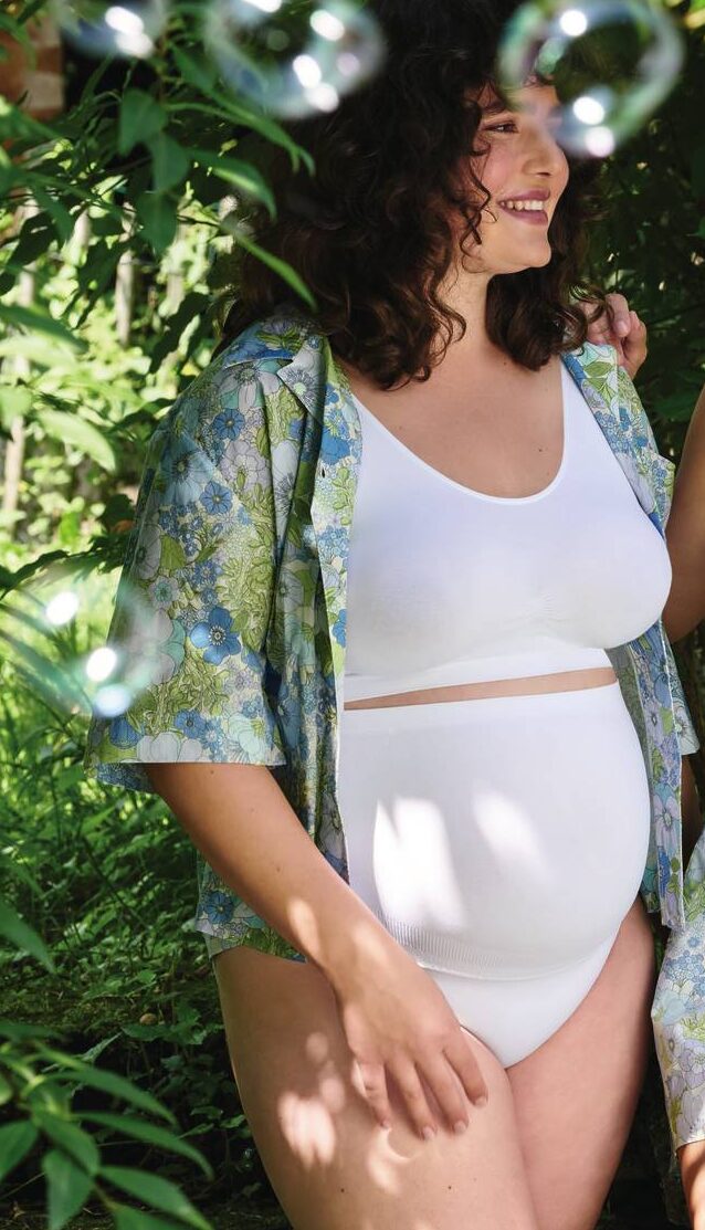 Braga de embarazo sin costuras que acaricia su piel, de material suave y transpirable. Los pliegues integrados en la espalda y la zona de refuerzo bajo el abdomen («powercontrol») garantizan una óptima sujeción.