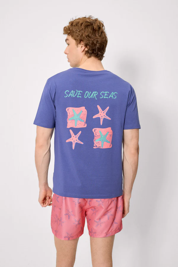 El diseño Save our seas aporta un aire actual y veraniego. Su estilo limpio se combina con un pequeño detalle estampado en el pecho que