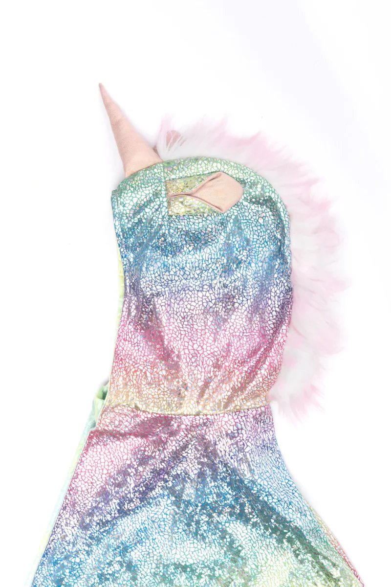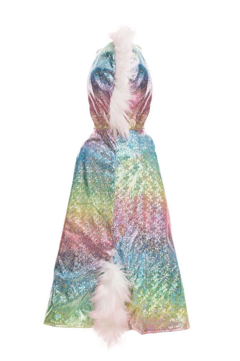 La capa reversible de unicornio-arcoíris/dragón es un accesorio mágico y encantador que evoca la imagen de un ser mitológico y hermoso.