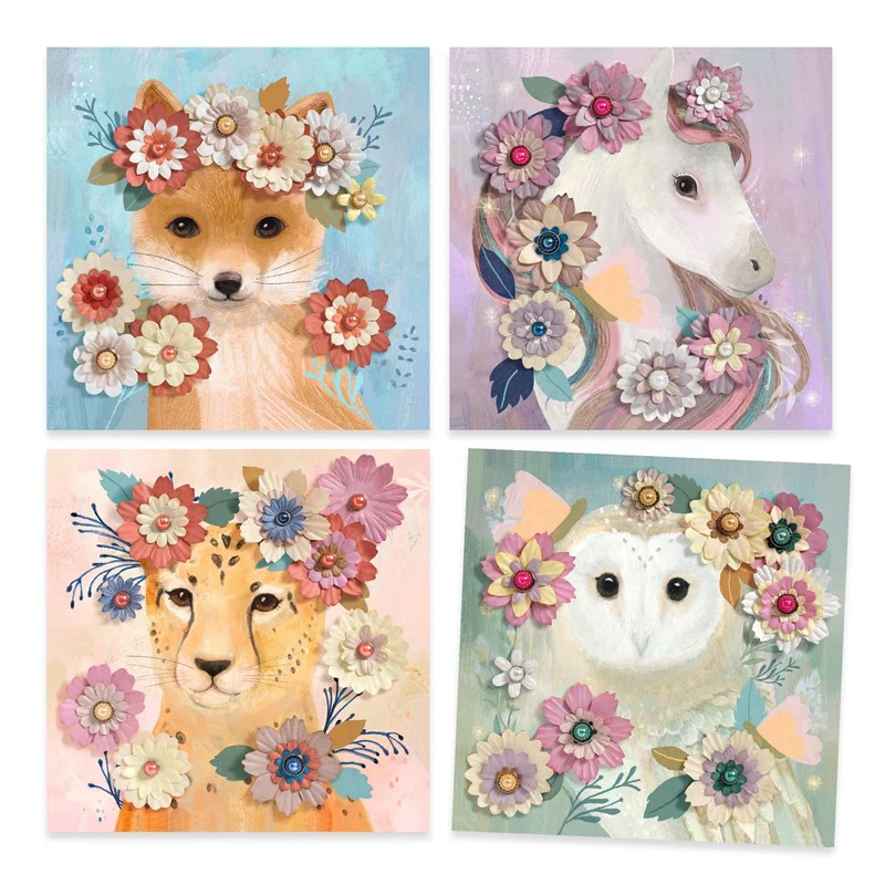 Papel Creativo, Coronas de Flores – Djeco: ¡Adorna a los Animales con Flores 3D!