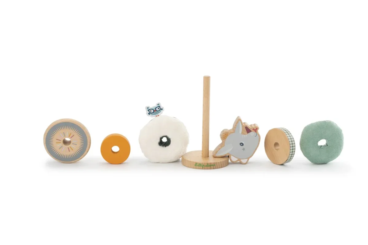 Descubre esta pirámide para apilar, única y llena de alegría, creada con diversos materiales que potencian el desarrollo de las habilidades motrices finas en los más pequeños. Al apilar las piezas una sobre otra, se despierta la creatividad mientras se exploran formas y texturas.