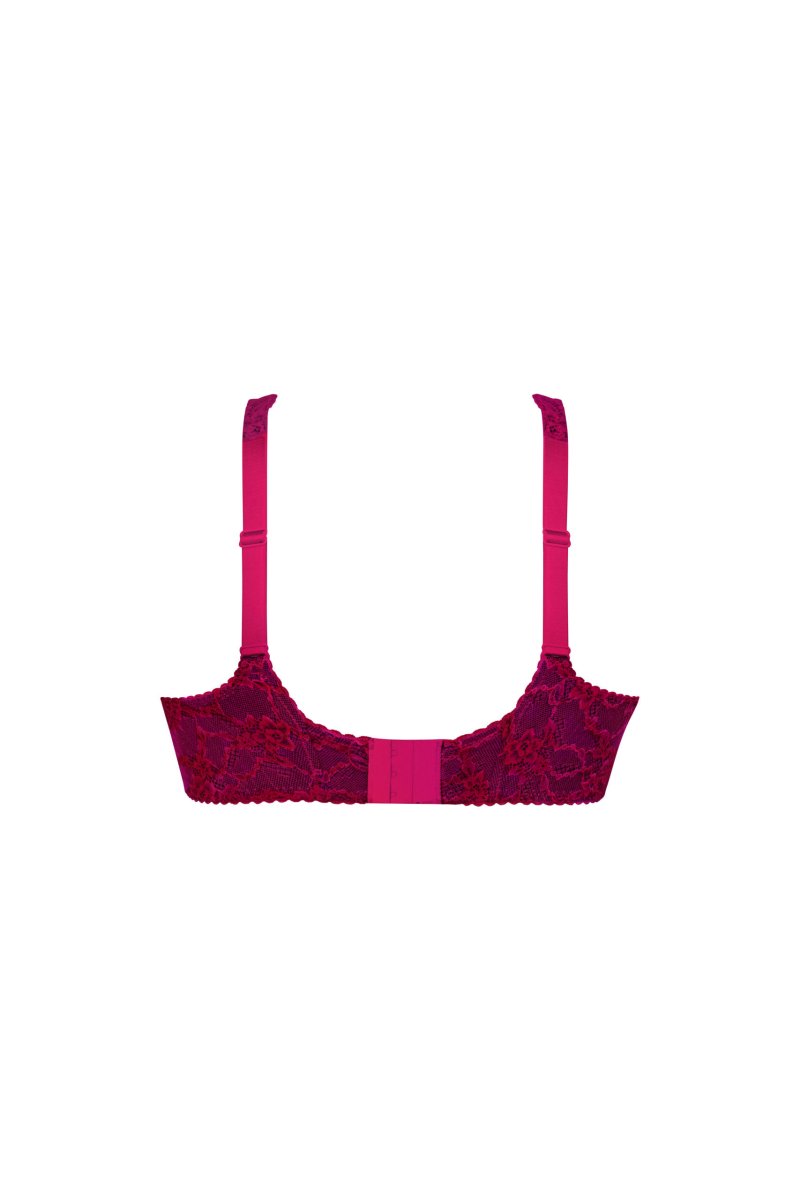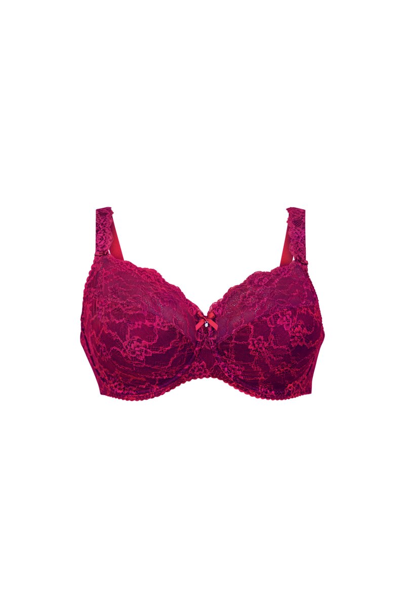 El modelo Full-Cup de la línea Bobette está concebido especialmente para mujeres con una talla grande de pecho (hasta la copa J). El sujetador con aros Full-Cup tiene un corte innovador y cuenta con copas divididas en cuatro partes. El encaje elástico está reforzado con un tul fino en la parte superior de la copa y con un forro semitransparente no elástico en la parte inferior; un ribete continuo asegura la sujeción óptima de los pechos voluminosos.