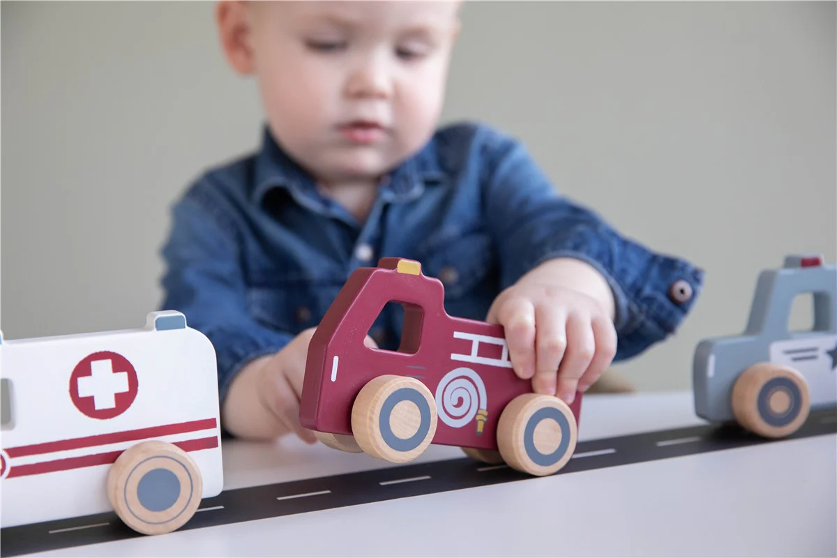 ¿Alguien necesita ayuda? ¡Los servicios de emergencia de Little Dutch están en camino! Con estos vehículos especiales, los niños aprenden a trabajar juntos y a ofrecer ayuda a otros a través del juego de roles.